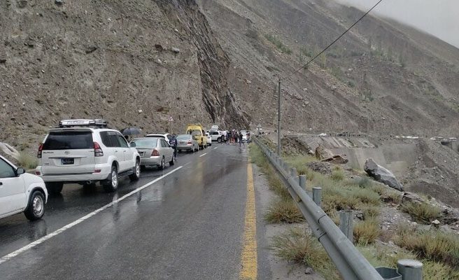 پولیس کے مطابق سازین سے داسو کے درمیان کئی مقامات پر لینڈ سلائیڈنگ کے سبب ٹریفک معطل ہے، جبکہ چلاس کے قریب منیار میں بھی لینڈ سلائیڈنگ کی وجہ سے شاہراہ قراقرم بند ہے۔