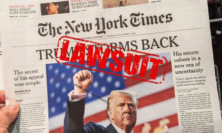 امریکی صدر نے کہا کہ اخبار دہائیوں سے اُن کے خاندان، کاروبار، امریکا فرسٹ تحریک، میک امریکا گریٹ اگین اور امریکا کو بدنام کرنے کی پالیسی پر کاربند ہے۔مقدمے میں نیویارک ٹائمز کے متعدد مضامین اور ایک کتاب ’لکی لوزر: ہاؤ ڈونلڈ ٹرمپ اسکوئنڈرڈ ہز فادرز فارچون اینڈ کریئیٹڈ دی الیوشن آف سکسیس‘ کا حوالہ دیا گیا ہے، جسے پینگوئن نے 2024 میں شائع کیا تھا۔