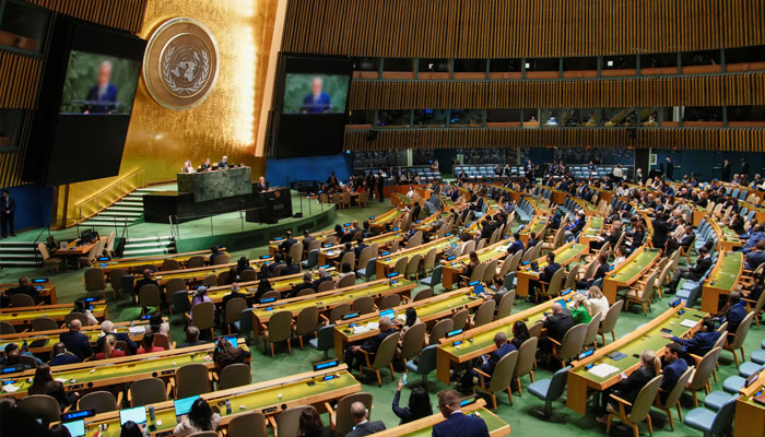 نیویارک میں اقوام متحدہ کی جنرل اسمبلی میں فلسطین کانفرنس جاری ہے جس کی سربراہی فرانس کے صدر ایمانول میکرون اور سعودی وزیر خارجہ فیصل بن فرحان کر رہے ہیں۔