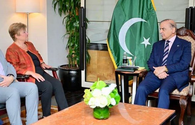 نیویارک میں آئی ایم ایف کی مینیجنگ ڈائریکٹر کرسٹالینا جارجیوا سے ملاقات کے دوران وزیراعظم نے کہا کہ حالیہ سیلابوں کے پاکستان کی معیشت پر پڑنے والے اثرات کو آئی ایم ایف کے جائزے میں شامل کیا جانا چاہیے۔