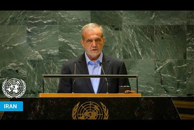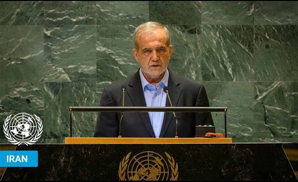 اس کے علاوہ ایرانی صدر نے کہا کہ ایران ایٹم بم نہ کبھی بنانا چاہتا تھا نہ کبھی بنائے گا نہ ہی ایران جوہری ہتھیار بنا رہا ہے۔ان کا کہنا تھا کہ ایران پر امریکا اور اسرائیل کے حملے سفارتی غداری اور ایرانی سائنسدانوں کو نشانہ بنا کر عالمی قوانین کی خلاف ورزی تھی۔ایرانی صدر نے غزہ میں فلسطینیوں کی نسل کُشی پر اسرائیلی وزیراعظم نیتن یاہو کو جنگی مجرم قرار دیا۔