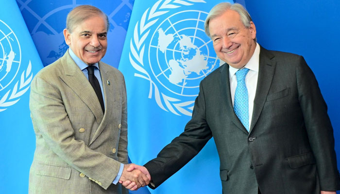 جنرل اسمبلی اجلاس سے خطاب کے بعد ہوئی اس ملاقات میں وزیراعظم شہباز شریف نے اہم قومی اور علاقائی امور پر بات کی۔وزیراعظم نے زور دیا کہ مسئلہ کشمیر کا منصفانہ اور پرامن حل سلامتی کونسل کی قراردادوں کے مطابق تلاش کیا جائے۔وزیراعظم نے حالیہ پاک بھارت جنگ میں کشیدگی ختم کرنے، امن اور استحکام کے لیے سیکرٹری جنرل کے کردار کی ستائش کی۔