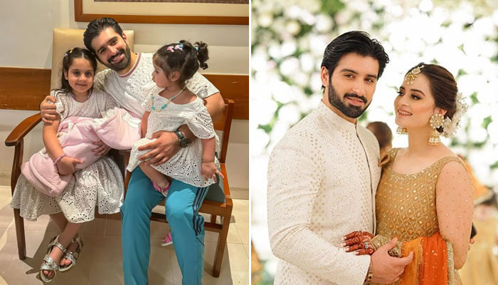 پاکستانی شوبز انڈسٹری کی معروف جوڑی اداکار منیب بٹ اور اداکارہ ایمن خان کے ہاں تیسری بیٹی کی پیدائش رواں برس اگست میں ہوئی ہے۔ اس سے قبل جوڑے کی 2 بیٹیاں امل اور مرال ہیں، اداکار منیب بٹ اور اداکارہ ایمن خان کی شادی 2018 میں ہوئی تھی۔
