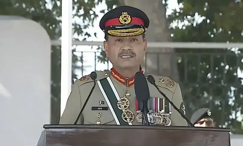 پاکستان ملٹری اکیڈمی کاکول میں پاسنگ آؤٹ پریڈ سے خطاب کرتے ہوئے آرمی چیف عاصم منیر نے کہا کہ آپریشن بنیان مرصوص کے دوران قوم اپنی فوج کے ساتھ فولاد کی طرح کھڑی تھی، آپریشن بنیان مرصوص سے قوم کے فوج پر اعتماد مزید مضبوط ہوا۔