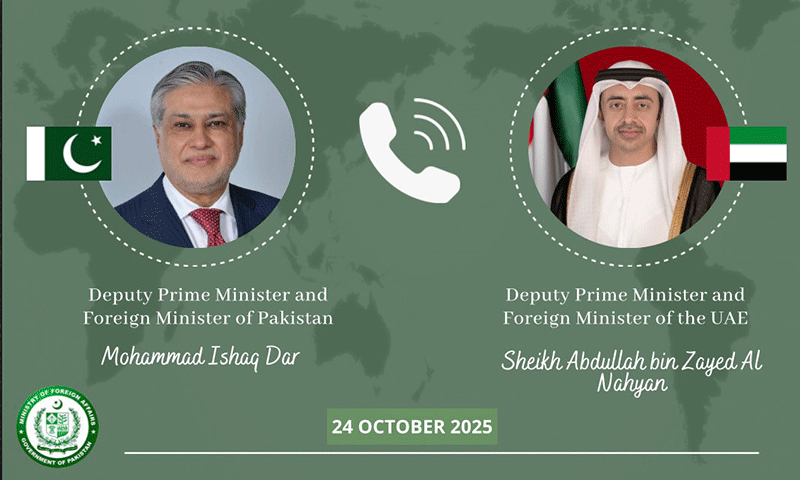 اسلام آباد: پاکستان کے نائب وزیرِاعظم و وزیرِ خارجہ سینیٹر محمد اسحاق ڈار اور متحدہ عرب امارات کے نائب وزیرِاعظم و وزیرِ خارجہ شیخ عبداللہ بن زاید النہیان کے درمیان ٹیلیفونک گفتگو ہوئی، جس میں دوطرفہ تعلقات اور عالمی و علاقائی صورتحال پر تفصیلی تبادلہ خیال کیا گیا۔
