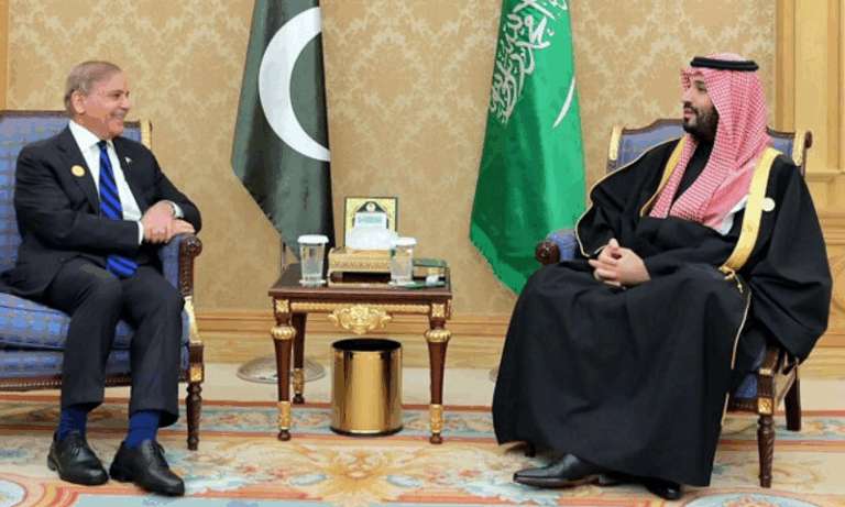 وزیرِ اعظم محمد شہباز شریف کی ریاض میں سعودی ولی عہد و وزیرِ اعظم شہزادہ محمد بن سلمان سے خوشگوار ماحول میں ملاقات