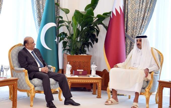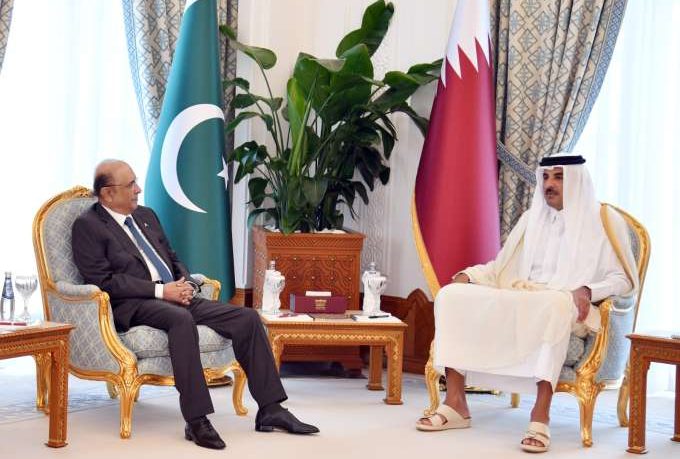 دوحہ: صدرِ مملکت آصف علی زرداری نے قطر کے امیر شیخ تمیم بن حمد الثانی سے دوحہ میں اہم ملاقات کی، جس میں دوطرفہ تعلقات، تجارت، سرمایہ کاری اور خطے کی موجودہ صورتحال پر تبادلہ خیال کیا گیا۔ دونوں رہنماؤں نے پاکستان اور قطر کے درمیان تاریخی و برادرانہ تعلقات کو مزید وسعت دینے کے عزم کا اظہار کیا۔
