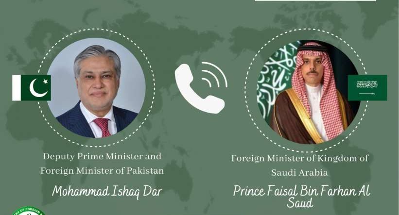 اسحاق ڈار کا سعودی وزیر خارجہ سے ٹیلیفونک رابطہ، باہمی تعلقات کو مضبوط بنانے کا عزم