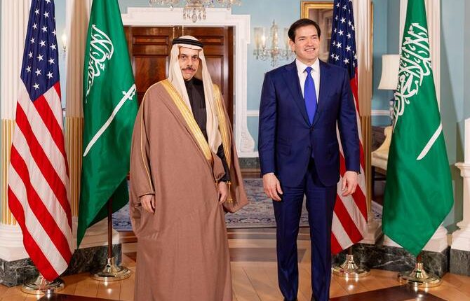 واشنگٹن: سعودی عرب کے وزیرِ خارجہ شہزادہ فیصل بن فرحان بن عبداللہ نے اپنے سرکاری دورے کے دوران واشنگٹن میں امریکی وزیرِ خارجہ مارکو روبیو سے ملاقات کی، جس میں دونوں رہنماؤں نے دوطرفہ تعلقات اور خطے کی تازہ صورتحال پر تفصیلی گفتگو کی۔