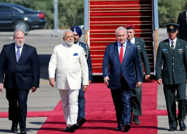 عالمی خبر رساں ادارے کے مطابق بھارتی وزیراعظم نریندر مودی کا استقبال اسرائیل کے بین گوریون ایئرپورٹ پر ہم منصب نیتن یاہو نے کیا۔مودی کے استقبال کے لیے اسرائیلی وزیراعظم کے ساتھ ہمراہ ان کی اہلیہ سارہ نیتن یاہو سمیت اعلیٰ حکام بھی موجود تھے۔