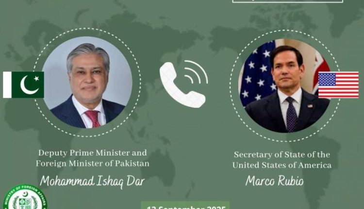 پاکستان کے نائب وزیرِاعظم و وزیرِ خارجہ سینیٹر محمد اسحاق ڈار کو امریکہ کے وزیرِ خارجہ مارکو روبیو نے ٹیلیفون کیا۔ دونوں رہنماؤں نے پاک۔امریکہ تعلقات کے مثبت رخ پر اطمینان کا اظہار کیا اور حالیہ علاقائی و عالمی امور پر تبادلہ خیال کیا۔